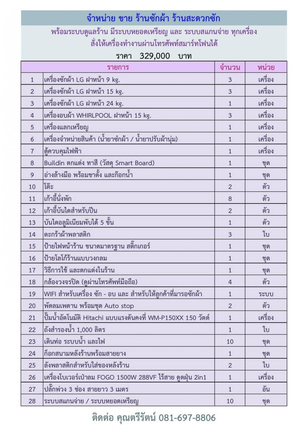 (สามารถดำเนินกิจการ เป็นเจ้าของร้านได้ทันที พร้อมให้คำปรึกษา และแนะนำการใช้งานและการดูแลร้าน)